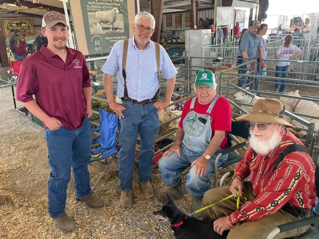 OUR NEW BREED ASSOCIATION OFFICERS, NOAH BARKLEY, VICE PRESIDENT ON LFT AND MIKE MALOY, PRESIDENT ON RIGHT PICTURED WITH MACQUEEN AND RON FLETCHER. THANKS TO PRISCILLA MALOY FOR TAKING THE PICTURE.