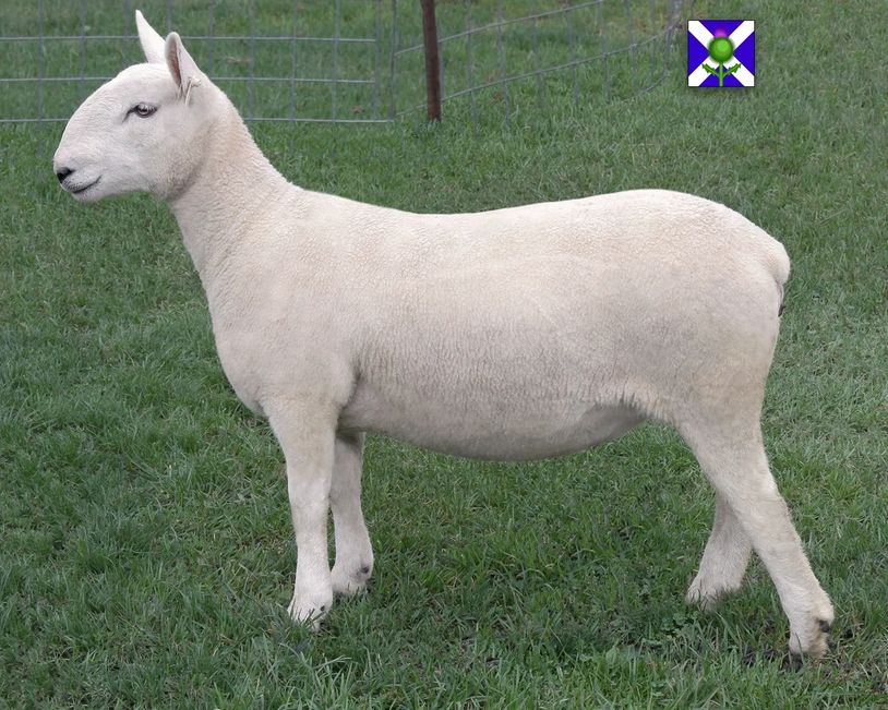 HIGHLAND LASS 999, yearling daughter of Sebay Xcitable topped our fall 25 online sale at $2200, breakling the breed female record our lamb set 2024. We thank Ed and Stephanie Compton from Wisconsin. for their purchase. We wish them all the best. We think this is a great female, as is her twin sister in our flock.