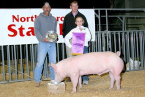 Earlie Byrum, on left with one of the many winners he bred at the North Carolina State Fair. When I showed him this picture,I said"I think we got a good shot of the hog. "